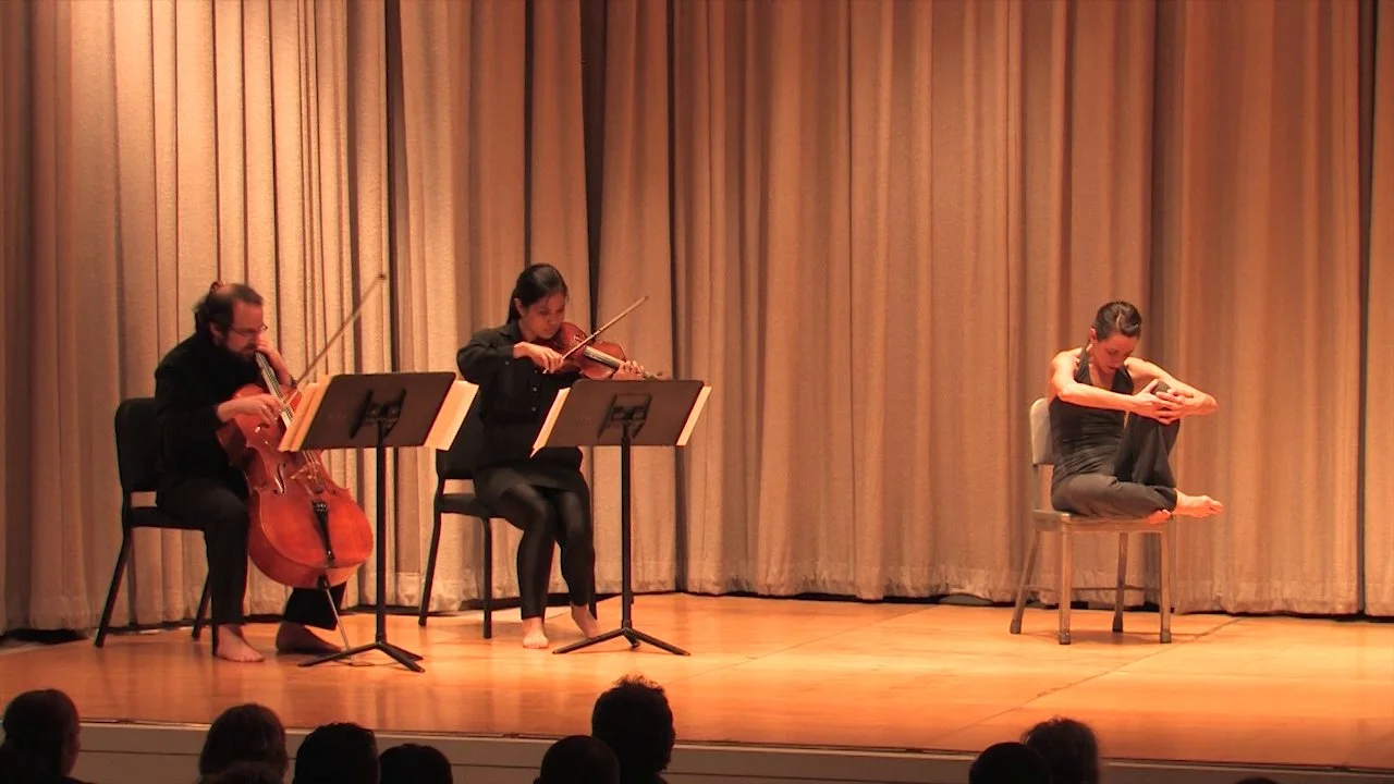 Liaison is a work for piano and dancer conceived by Megan Beugger and made in collaboration with dancer/choreographer Melanie Aceto. In this piece, Beugger explores the duality of roles for the dancer as musician and the piano as both provider and inhibitor of sound. This work questions the primacy of movement vs. sound and the possession of control.